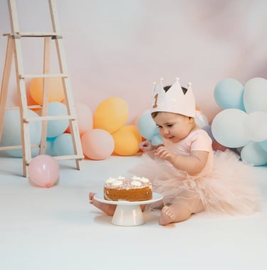 Celebrate your baby's first birthday with an unforgettable cake smash and splash photo session! Dress them in their adorable outfit, ready to dive into a delicious cake and make a delightful mess. Capture the joy as they squish, smash, and enjoy their cake like true little culinary artists, all while I capture the cutest photos. After the sweet fun, it’s time for a bubbly cleanup in the tub, where they can splash around and revel in the excitement. This special day will not only create lasting memories but also provide you with precious keepsakes of your little one’s joy and personality.