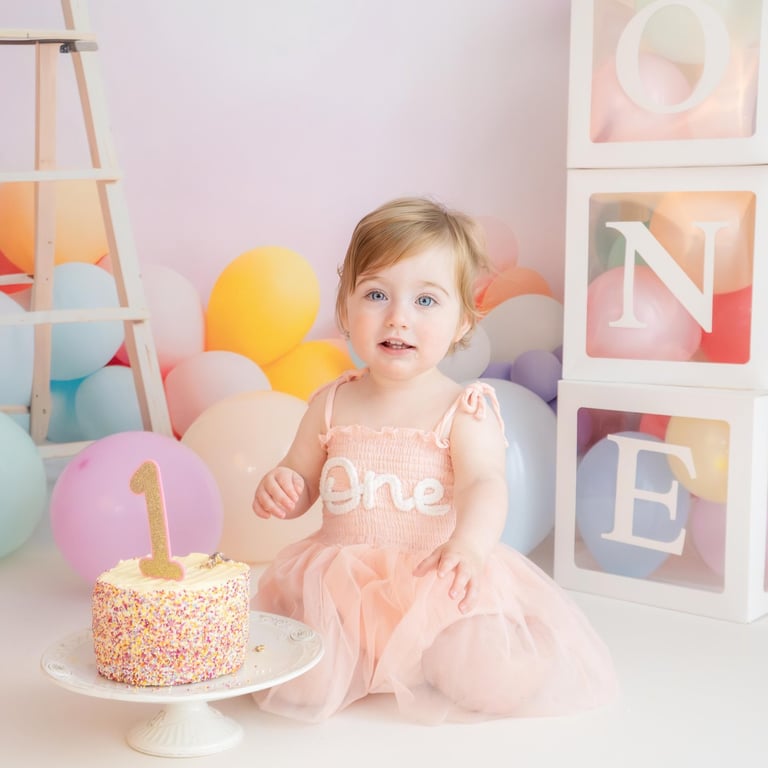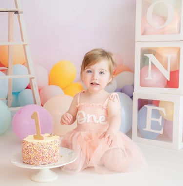 Celebrate your baby's first birthday with an unforgettable cake smash and splash photo session! Dress them in their adorable outfit, ready to dive into a delicious cake and make a delightful mess. Capture the joy as they squish, smash, and enjoy their cake like true little culinary artists, all while I capture the cutest photos. After the sweet fun, it’s time for a bubbly cleanup in the tub, where they can splash around and revel in the excitement. This special day will not only create lasting memories but also provide you with precious keepsakes of your little one’s joy and personality.