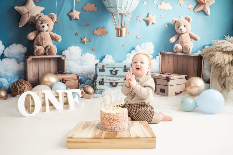 Cake smash sessions are best booked when your baby is 10–11 months old, especially if you’d like images ready for birthday celebrations.
